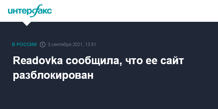 Москва. 3 сентября. INTERFAX.RU - Роскомнадзор разблокировал сайт Readovka.ru и исключил его из списка запрещенных в России после удаления семи публикаций, вызвавших претензии ведомства, сообщило издание.