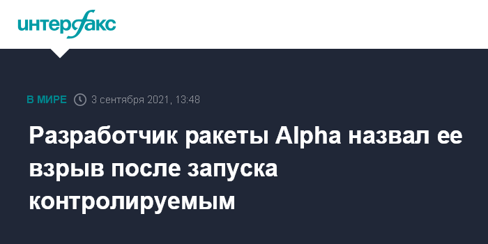 Разработчик ракеты Alpha назвал ее взрыв после запуска контролируемым