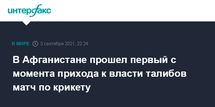 Москва. 3 сентября. INTERFAX.RU - На стадионе афганской столицы состоялся первый матч по крикету с момента прихода к власти в Афганистане движения "Талибан" (террористическая организация, запрещенная в РФ), сообщают в пятницу европейские СМИ.
