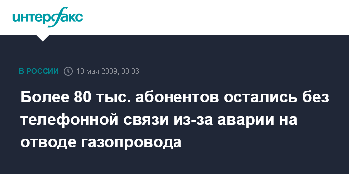 Более 80 тыс. абонентов остались без телефонной связи из-за аварии на отводе газопровода