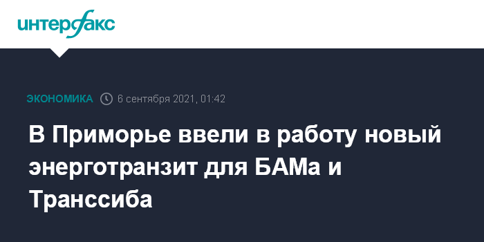 Москва. 6 сентября. INTERFAX.RU - ПАО "ФСК ЕЭС" (бренд "Россети ФСК ЕЭС") в воскресенье ввело в работу в Приморском крае воздушную линию электропередачи для электроснабжения Байкало-Амурской и Транссибирской магистралей, говорится в сообщении группы "Россети".