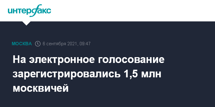 Москва. 6 сентября. INTERFAX.RU - Количество поданных заявок на дистанционное электронное голосование (ДЭГ) на сентябрьские выборы достигло 1,5 млн, сообщается в понедельник на официальном сайте столичной мэрии.
