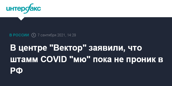 Москва. 7 сентября. INTERFAX.RU - В Российской Федерации не зарегистрировано случаев заражения вариантом COVID-19 "мю", также нет предпосылок для вытеснения им штамма "дельта", сообщили "Интерфаксу" во вторник в центре "Вектор" Роспотребнадзора.