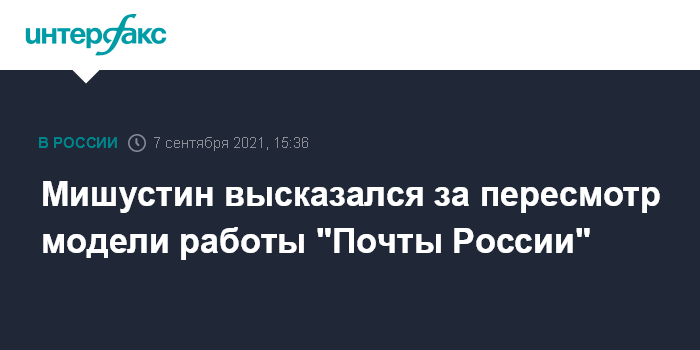 Москва. 7 сентября. INTERFAX.RU - Модель работы "Почты России" нужно пересматривать с учетом цифровой трансформации в мире, при этом она должна служить на благо людей, обеспечивая их необходимыми услугами, заявил премьер-министр РФ Михаил Мишустин.