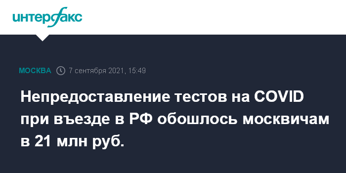 Непредоставление тестов на COVID при въезде в РФ обошлось москвичам в 21 млн руб.