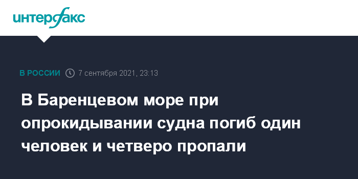 В Баренцевом море при опрокидывании судна погиб один человек и четверо пропали