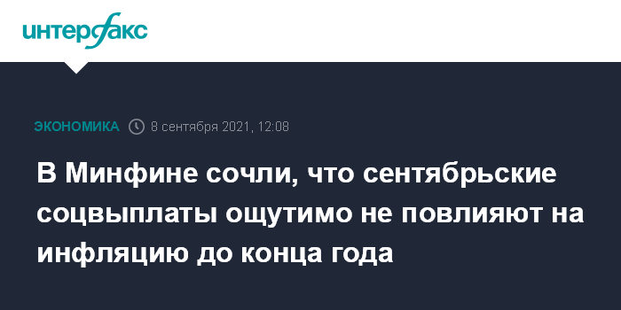 В Минфине сочли, что сентябрьские соцвыплаты ощутимо не повлияют на инфляцию до конца года