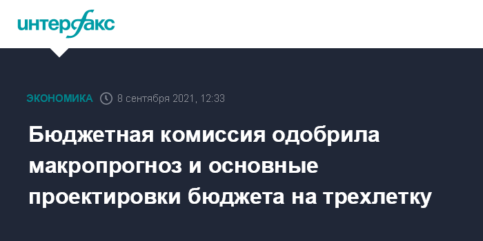 Москва. 8 сентября. INTERFAX.RU - Бюджетная комиссия правительства на заседании во вторник одобрила макропрогноз и основные характеристики бюджета на трехлетку, заявил премьер-министр РФ Михаил Мишустин, выступая на Московском финансовом форуме.