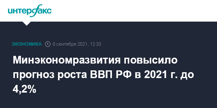 Минэкономразвития повысило прогноз роста ВВП РФ в 2021 г. до 4,2%