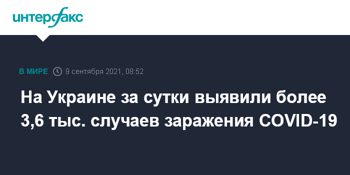 Москва. 9 сентября. INTERFAX.RU - На Украине по состоянию на утро четверга зафиксировано 3 663 новых случая инфицирования COVID-19, выздоровели 1 546 человек, 61 человек скончался, сообщила пресс-служба министерства здравоохранения Украины.