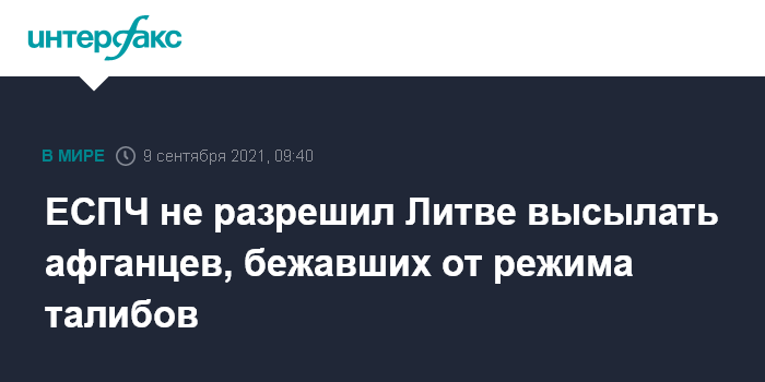 Москва. 9 сентября. INTERFAX.RU - Европейский суд по правам человека (ЕСПЧ) в среду наложил временный запрет на высылку пяти граждан Афганистана из Литвы.