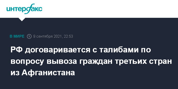РФ договаривается с талибами по вопросу вывоза граждан третьих стран из Афганистана