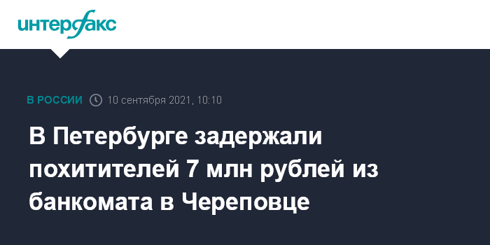 Москва. 10 сентября. INTERFAX.RU - Полиция нашла в Петербурге двоих подозреваемых в хищении крупной суммы из банкомата в Череповце; фигурантов искали с конца марта.