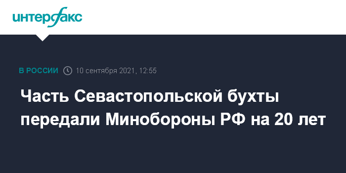 Москва. 10 сентября. INTERFAX.RU - Распоряжением правительства России часть акватории Севастопольской бухты Черного моря на юго-западе Крыма передана в пользование Минобороны РФ сроком на 20 лет.