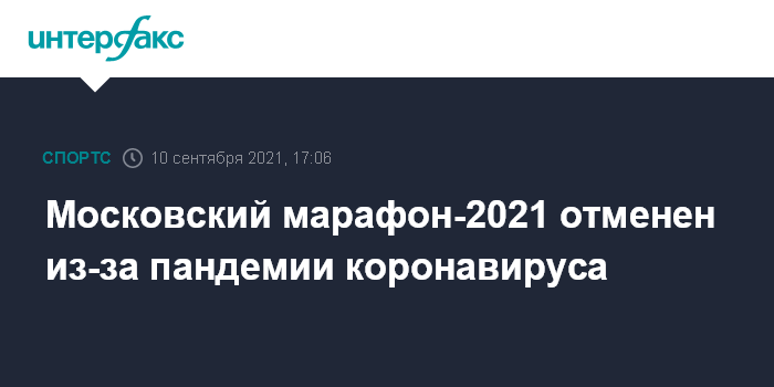 Москва. 10 сентября. INTERFAX.RU - Московский марафон в 2021 году не состоится из-за пандемии коронавируса, сообщает "Беговое сообщество".
