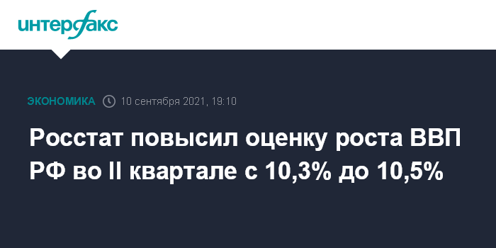 Таким образом, Росстат скорректировал свою предварительную оценку за второй квартал, сделанную в середине августа и равнявшуюся 10,3%, которая все-равно была лучше, чем ожидало Минэкономразвития (10,1%).