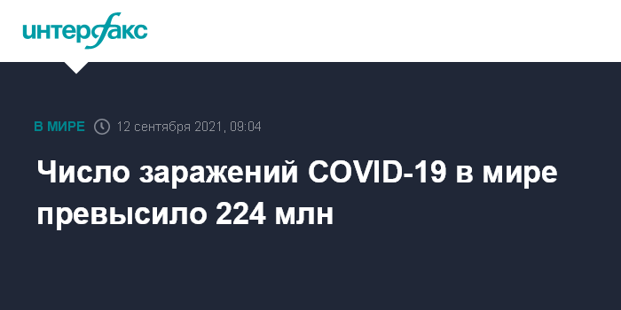 Москва. 12 сентября. INTERFAX.RU - Число зарегистрированных заражений коронавирусом COVID-19 в мире на утро воскресенья составило 224 272 830, сообщил американский университет Джонса Хопкинса.