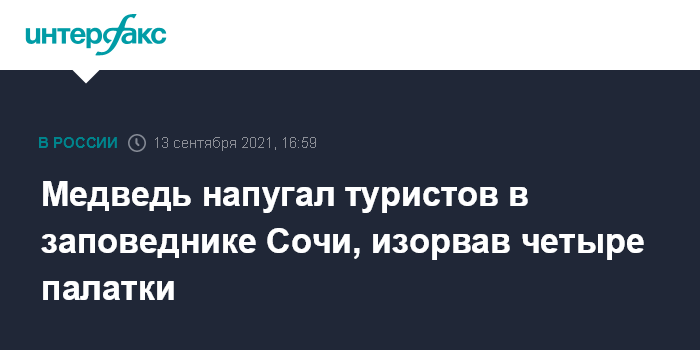 Москва. 13 сентября. INTERFAX.RU - В Кавказском заповеднике участились встречи медведей с туристами, которые остаются в лесу на ночлег.
