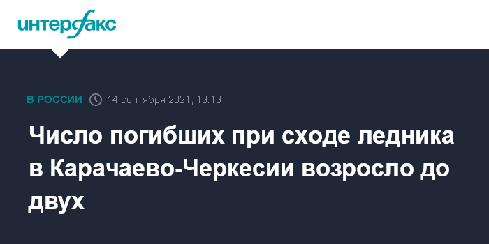 Москва. 14 сентября. INTERFAX.RU - Двое туристов погибли и один травмирован при сходе ледника Алибек в курортном Домбае в Карачаево-Черкесии. Об этом сообщили "Интерфаксу" в ГУ МЧС России по КЧР во вторник.