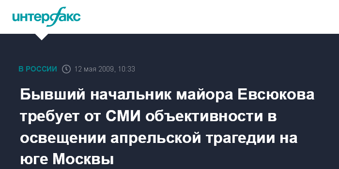 Бывший начальник майора Евсюкова требует от СМИ объективности в освещении апрельской трагедии на юге Москвы