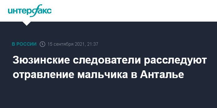 Предварительно установлено, что мальчика 9 сентября доставили в больницу в Анталье с симптомами отравления, которые у него проявлялись в течение нескольких предшествующих дней. 10 сентября он умер. В Турции он находился с родителями.