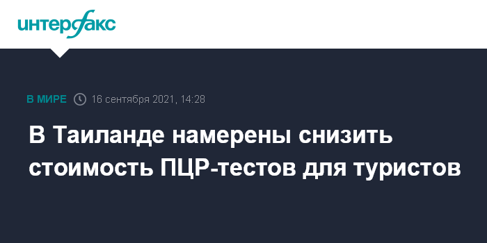 Москва. 16 сентября. INTERFAX.RU - Таиланд стало сложно привлечь иностранных туристов на отдых из-за дорогостоящего ПЦР-тестирования во время пребывания в стране, поэтому власти рассматривают возможность вдвое снизить цены на тесты, сообщает газета The Bangkok Post.