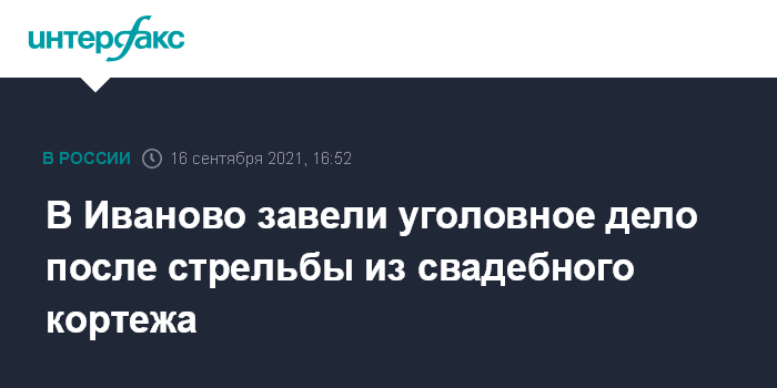 Москва. 16 сентября. INTERFAX.RU - Полиция в Иваново возбудила уголовное дело в отношении участников свадебного кортежа, устроивших стрельбу на улицах города, сообщает пресс-служба УМВД по региону.