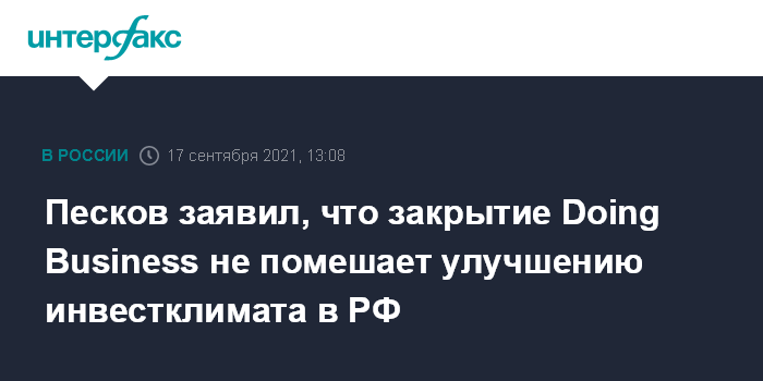Песков заявил, что закрытие Doing Business не помешает улучшению инвестклимата в РФ