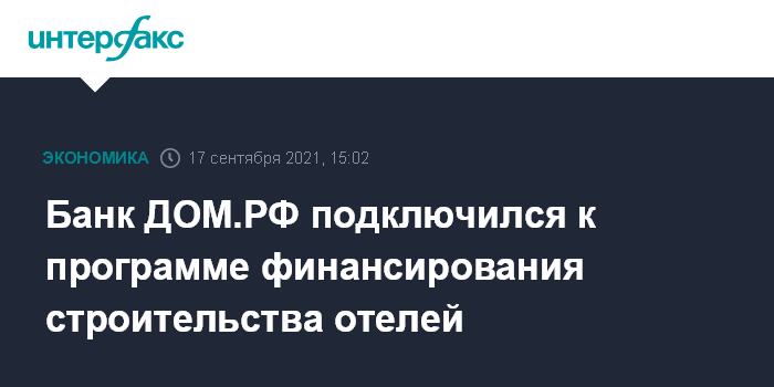 Банк ДОМ.РФ подключился к программе финансирования строительства отелей