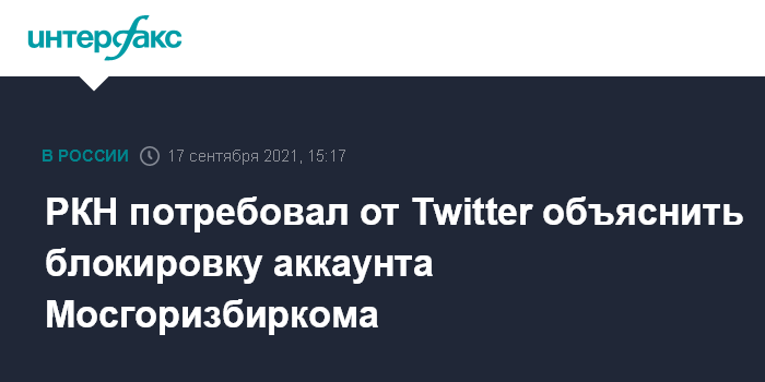 РКН потребовал от Twitter объяснить блокировку аккаунта Мосгоризбиркома