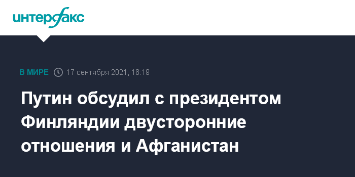 Путин обсудил с президентом Финляндии двусторонние отношения и Афганистан