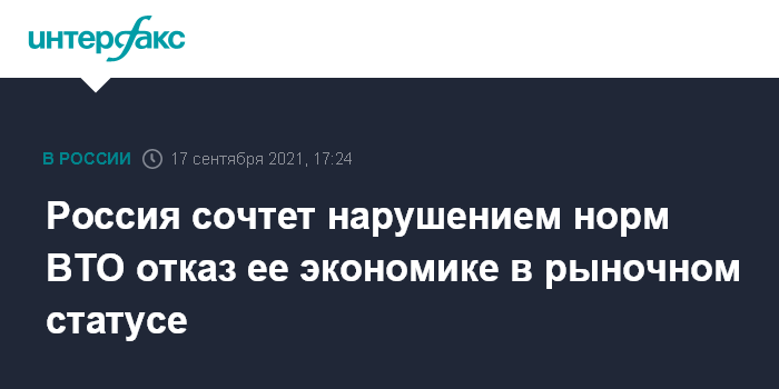 Россия сочтет нарушением норм ВТО отказ ее экономике в рыночном статусе
