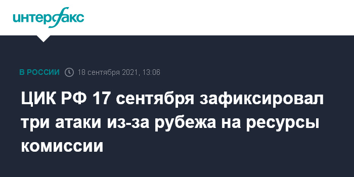 Москва. 18 сентября. INTERFAX.RU - В первый день голосования на выборах Центризбирком России зафиксировал три кибератаки на ресурсы комиссии из зарубежных стран, сообщил глава Федерального центра информатизации (ФЦИ) при ЦИК РФ Александр Сокольчук.