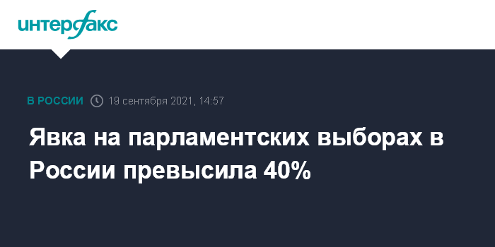 Москва. 19 сентября. INTERFAX.RU - Явка российских избирателей на выборах депутатов Госдумы на середину третьего дня голосования превысила 40%.