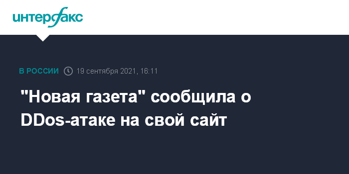 Москва. 19 сентября. INTERFAX.RU - Сайт "Новой газеты" недоступен из-за DDos-атаки, его работа должна быть восстановлена в течение часа, сообщает в воскресенье издание.