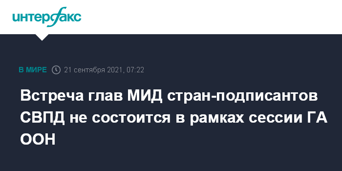Встреча глав МИД стран-подписантов СВПД не состоится в рамках сессии ГА ООН