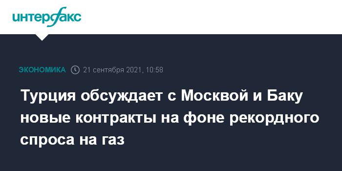 Турция обсуждает с Москвой и Баку новые контракты на фоне рекордного спроса на газ