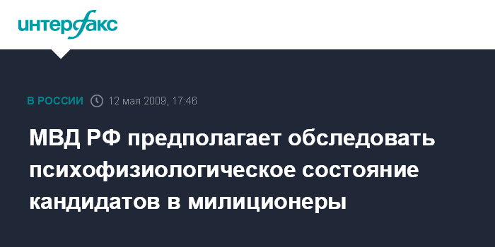 МВД РФ предполагает обследовать психофизиологическое состояние кандидатов в милиционеры