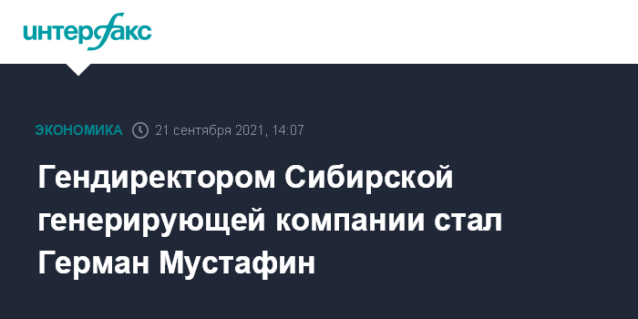 Гендиректором Сибирской генерирующей компании стал Герман Мустафин