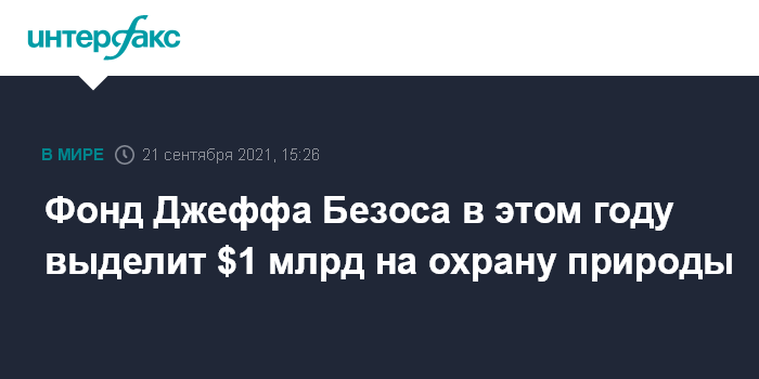 Москва. 21 сентября. INTERFAX.RU - Экологический фонд Джеффа Безоса Earth Fund выделит в этом году $1 млрд на деятельность по охране природы, говорится в сообщении фонда.
