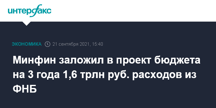 "Запланированы и меры дополнительного стимулирования экономики. Это и льготные бюджетные кредиты субъектам РФ, это и возможности регионов по использованию средств от реструктуризации бюджетных кредитов и направлению их на развитие экономики, и средства ФНБ, которые будут использованы на приоритетные проекты социально-экономического развития в объеме 1,6 трлн рублей", - заявил Силуанов.