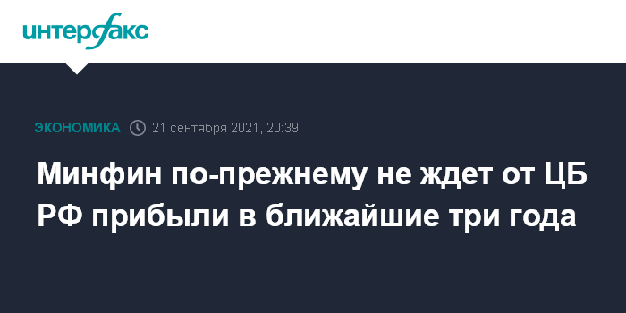 Минфин по-прежнему не ждет от ЦБ РФ прибыли в ближайшие три года