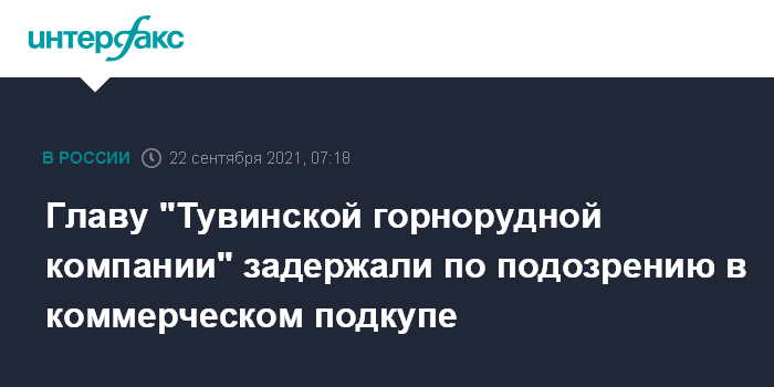 Москва. 22 сентября. INTERFAX.RU - Сотрудники полиции, ФСБ и СКР задержали генерального директора ООО "Тувинская горнорудная компания" Станислава Горбунова по подозрению в коммерческом подкупе, сообщил "Интерфаксу" информированный источник в среду.