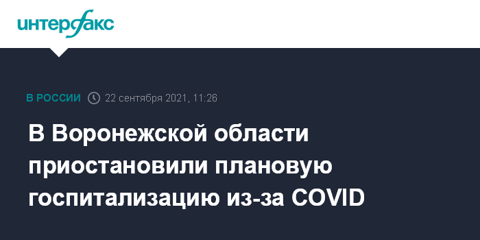 Москва. 22 сентября. INTERFAX.RU - Больницы Воронежской области временно не принимают пациентов на плановое стационарное лечение из-за сложной эпидситуации c коронавирусом. Об этом сообщает региональный департамент здравоохранения.