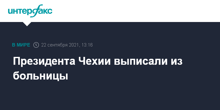 Москва. 22 сентября. INTERFAX.RU - Президента Чехии Милоша Земана в среду выписали из больницы после полного обследования, сообщает Associated Press.