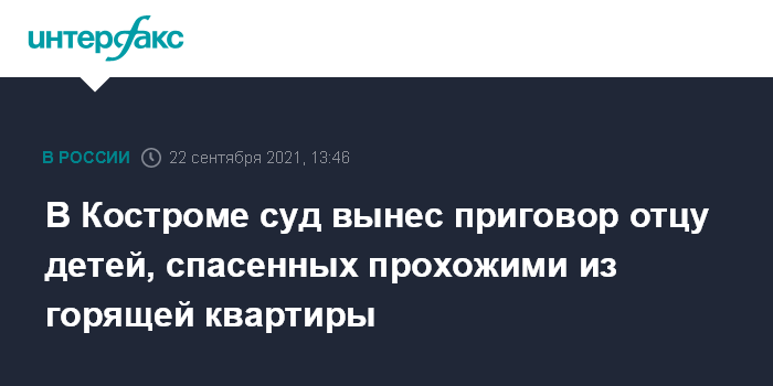 Москва. 22 сентября. INTERFAX.RU - Суд в Костроме вынес обвинительный приговор 46-летнему мужчине по делу об оставлении своих детей в опасности, сообщает СУ СКР по региону.