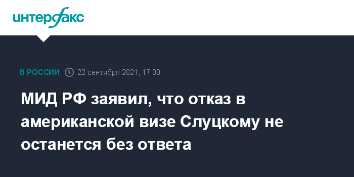 Москва. 22 сентября. INTERFAX.RU - Решение США отказать в визе главе комитета Госдумы по международным делам Леониду Слуцкому, который в составе российской делегации планировал принять участие в сессии сегмента высокого уровня Генассамблеи ООН, противоречит международно-правовым нормам и не останется без реакции, заявили в среду в МИД РФ.