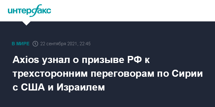 Axios узнал о призыве РФ к трехсторонним переговорам по Сирии с США и Израилем