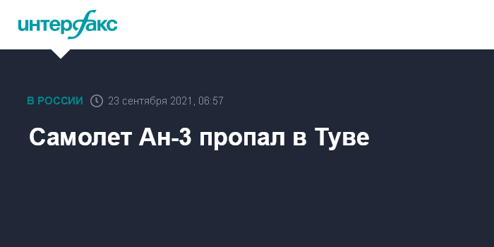 Москва. 23 сентября. INTERFAX.RU - Диспетчеры в Туве не могут установить местонахождение самолета Ан-3, сообщил "Интерфаксу" источник в авиадиспетчерских службах.