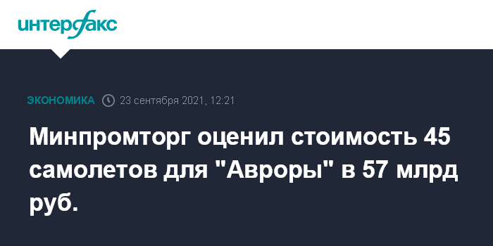 Минпромторг оценил стоимость 45 самолетов для "Авроры" в 57 млрд руб.